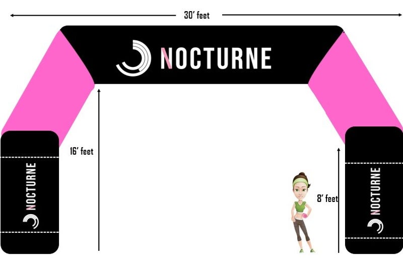 5m/22 ft. wide. Blowup arch with a Zip-In/Zip-Out Wall for sponsors or race logo for Social Media pictures. Arch, Blower, Wall, Bag included. Best used as SELFIE Wall or AWARDS Wall. Have 5 races...own 1 Arch...and yip-in different walls for each race!